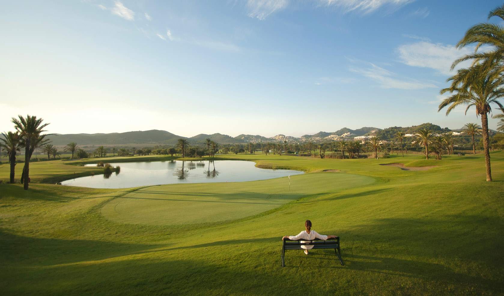 18-hole resort course set in a planned environment, known for its flat fairways, palm-lined scenery, and relaxed atmosphere; its signature Hole 18 is a beautiful water-framed finishing hole that provides a memorable finale, with the added appeal of proximity to the beaches of the Mar Menor and the luxury lifestyle of Santa Rosalía.